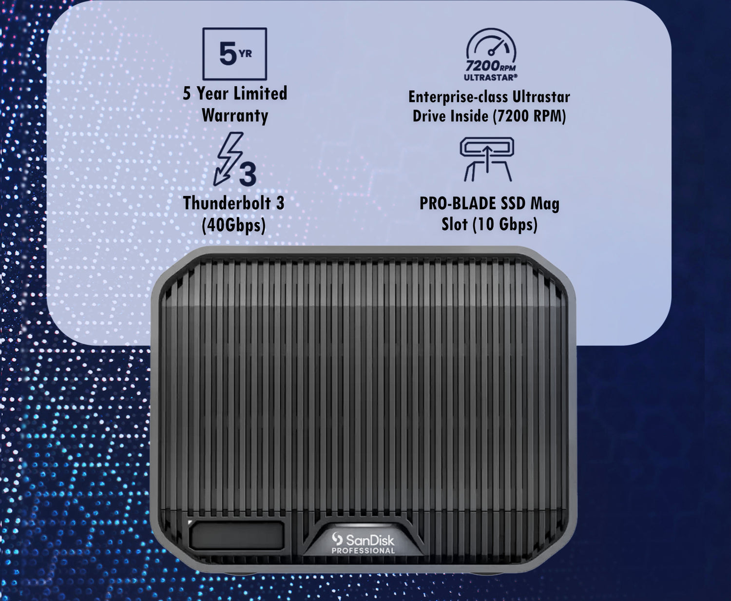 • SanDisk Professional 16TB G-RAID Mirror 2-Bay RAID Array (2 x 8TB, Thunderbolt 3)