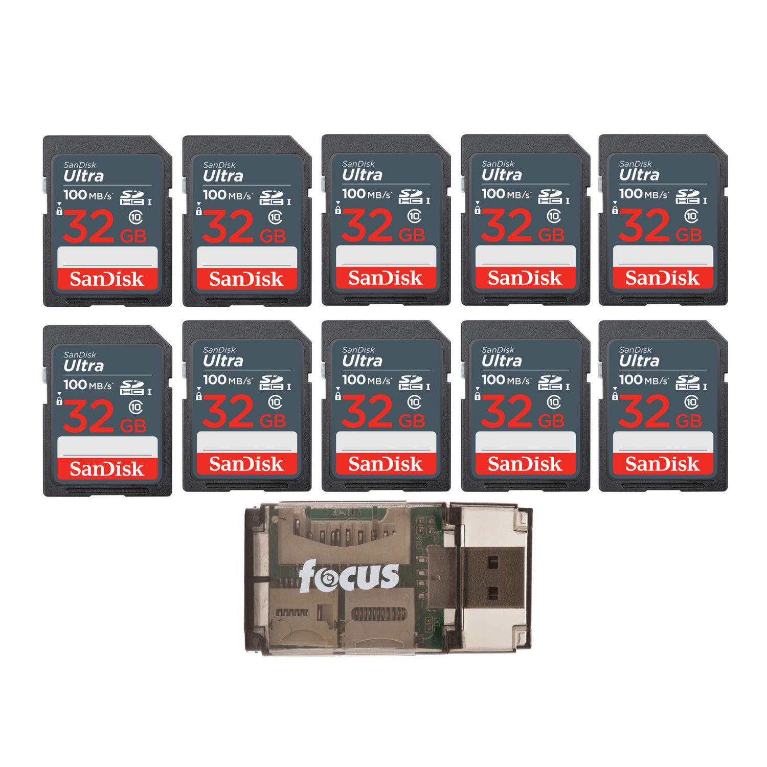 SanDisk 32GB Ultra SDHC UHS-I Memory Card (10-Pack) with USB Card Reader Bundle