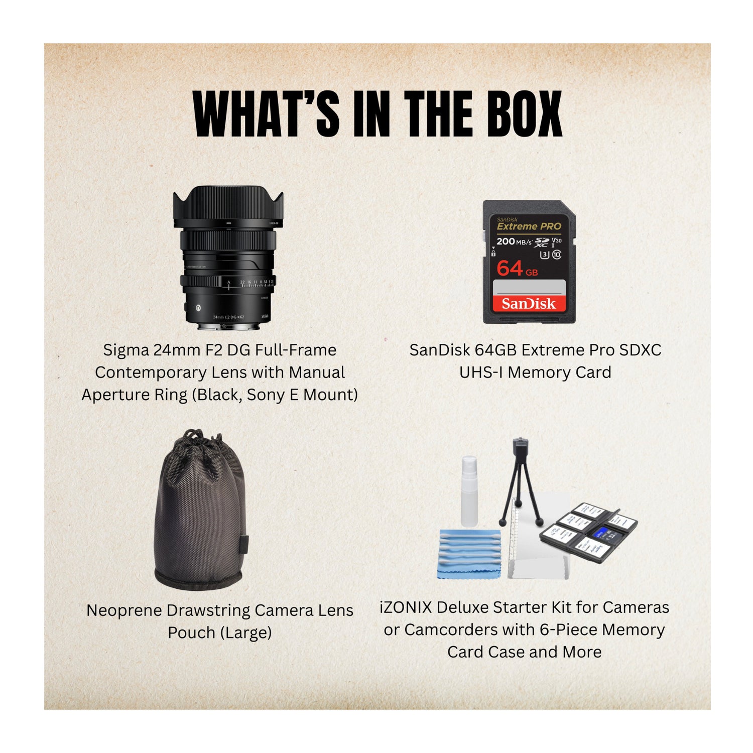 Sigma 24mm F2 DG Black Contemporary Lens for Sony E Mount and Accessories Bundle