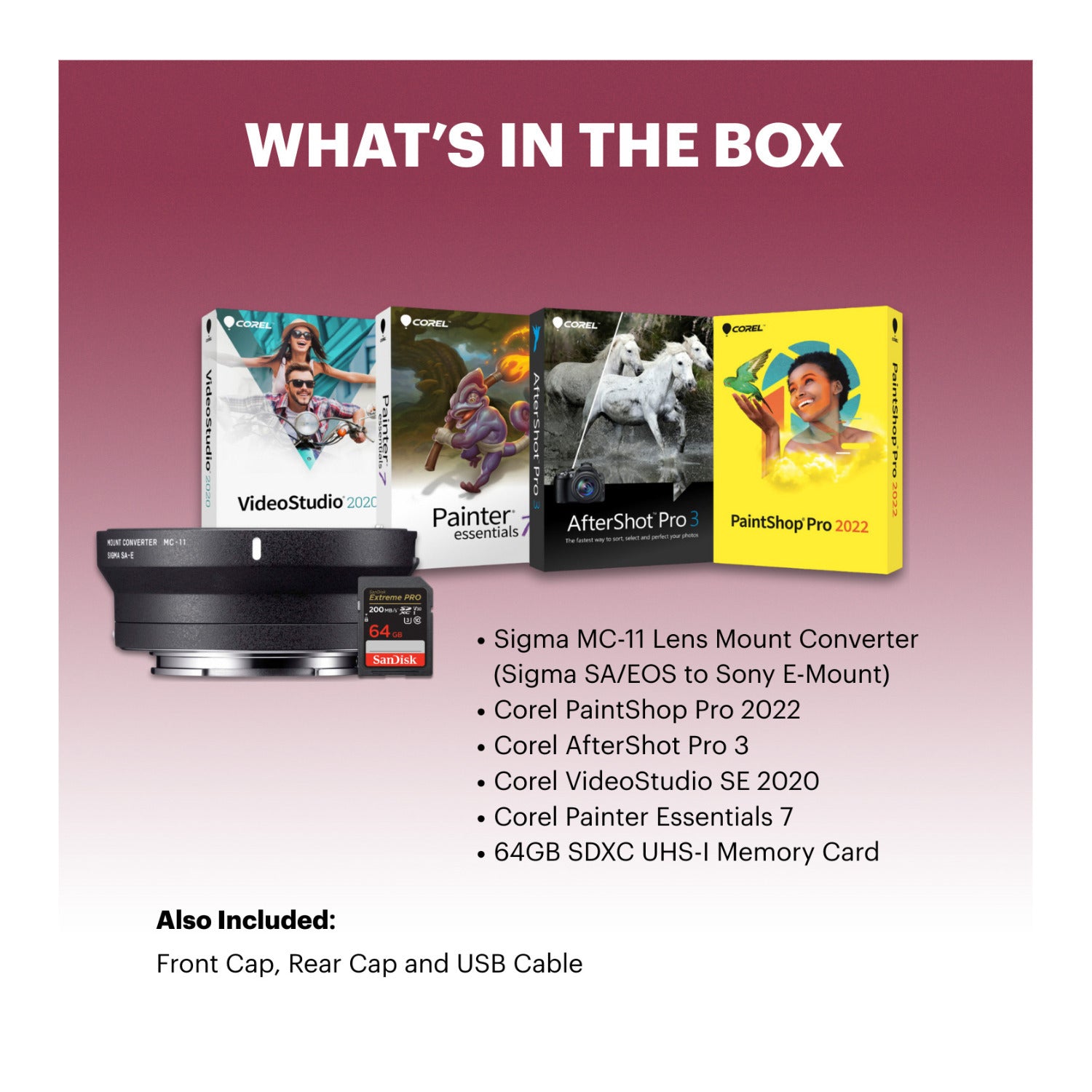 Sigma MC-11 Lens Mount Converter (Sigma SA/EOS to Sony E-Mount) with Software and 64GB Memory Card