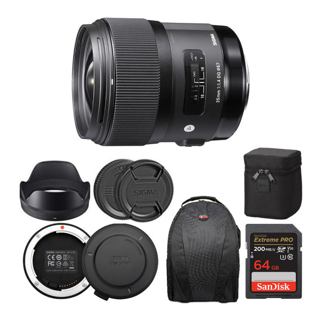 Sigma 35mm f/1.4 DG HSM ART Lens for Nikon with USB Dock and 64GB SD Card Bundle