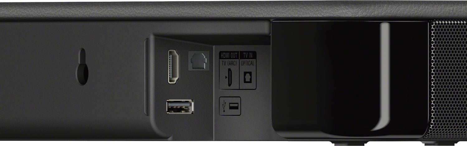 Enjoy your favorite shows and movies in enhanced sound quality delivered by this 2 channel soundbar with a Bass Reflex speaker. The HT-S100F's slim profile design fits easily in your home and sits comfortable within any interior.