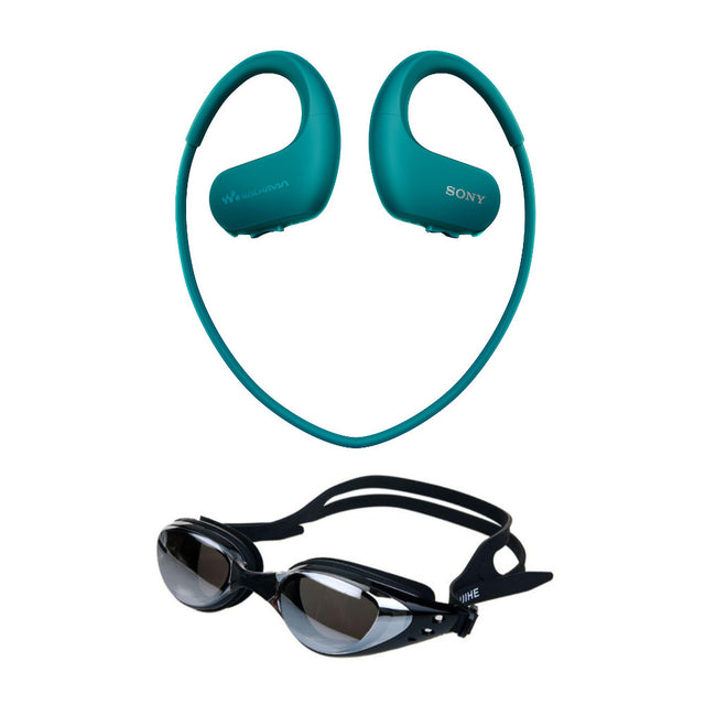 Sony NWWS413LM 4GB Sports Wearable MP3 Player (Blue) and Swimming Goggles