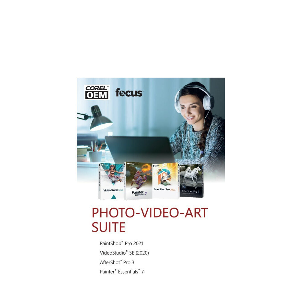 • Corel Photo Video Art Suite for Focus Camera (OEM Download Card) with VideoStudio SE 2020, Painter Essentials 7, PaintShop Pro 2021, AfterShot Pro 3