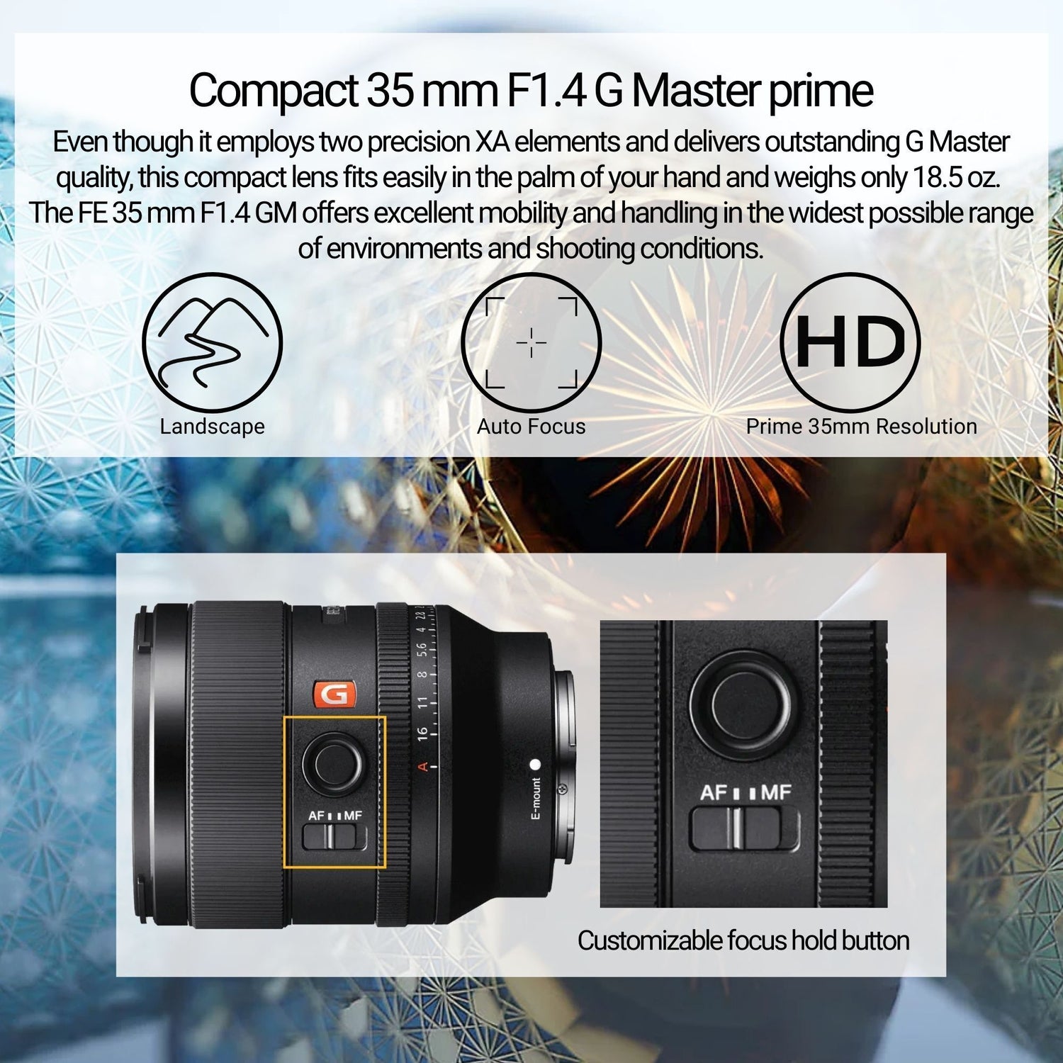 • Sony FE 35mm f/1.4 GM Full-Frame Large-Aperture Wide Angle G Master Lens
