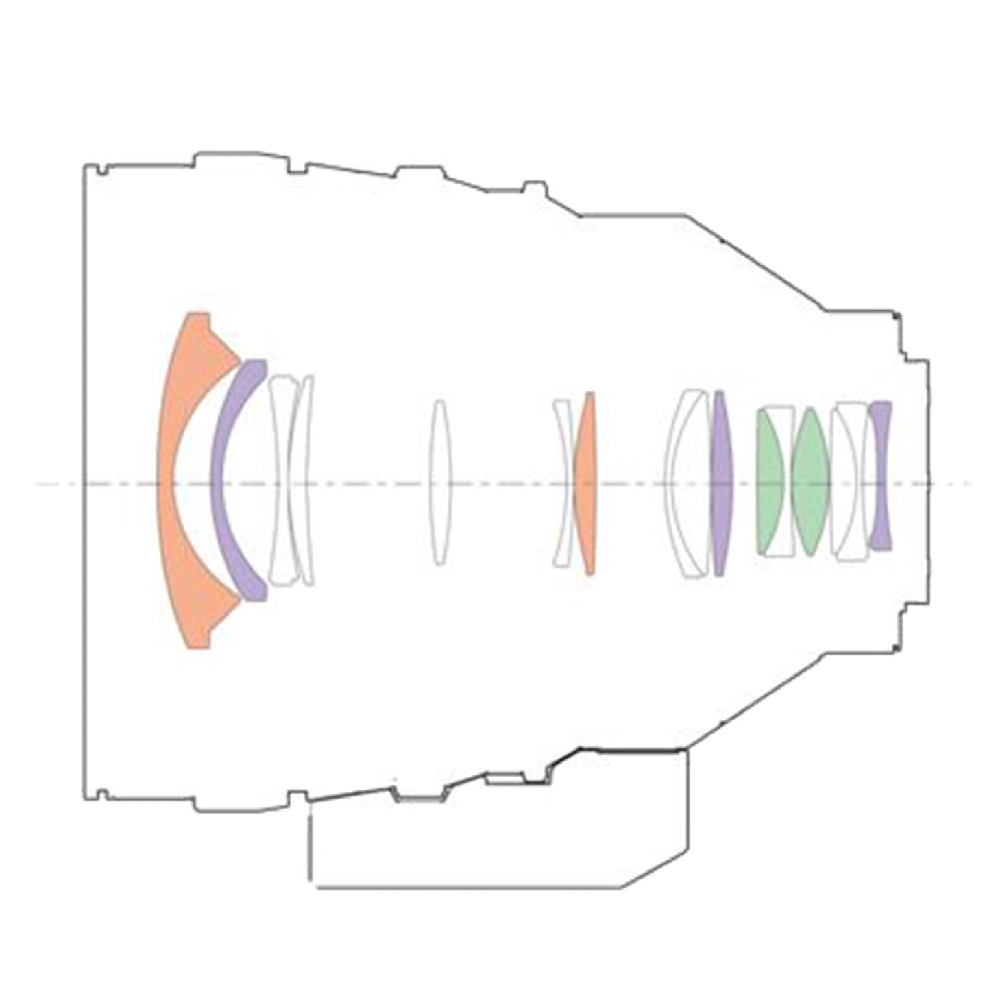 Two XA (extreme aspherical) elements with extremely high surface precision (better that 0.01-micron) are included and work with three aspherical elements to minimize aberrations that commonly plague wide-angle zooms, effectively controlling distortion, field curvature and astigmatism. The extremely precise XA elements reduce aberration and deliver ultimate corner-to-corner resolution throughout the entire zoom and aperture range.