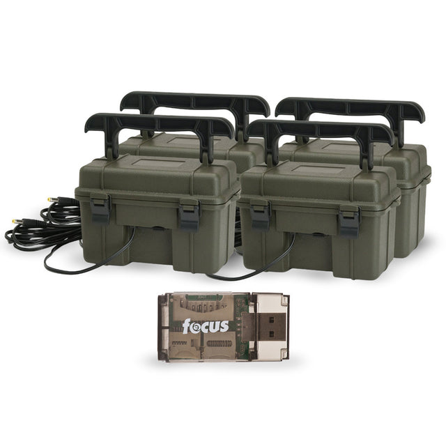 Stealth Cam 12V Weatherproof Battery Box (4-Pack, Dark Green) Bundle