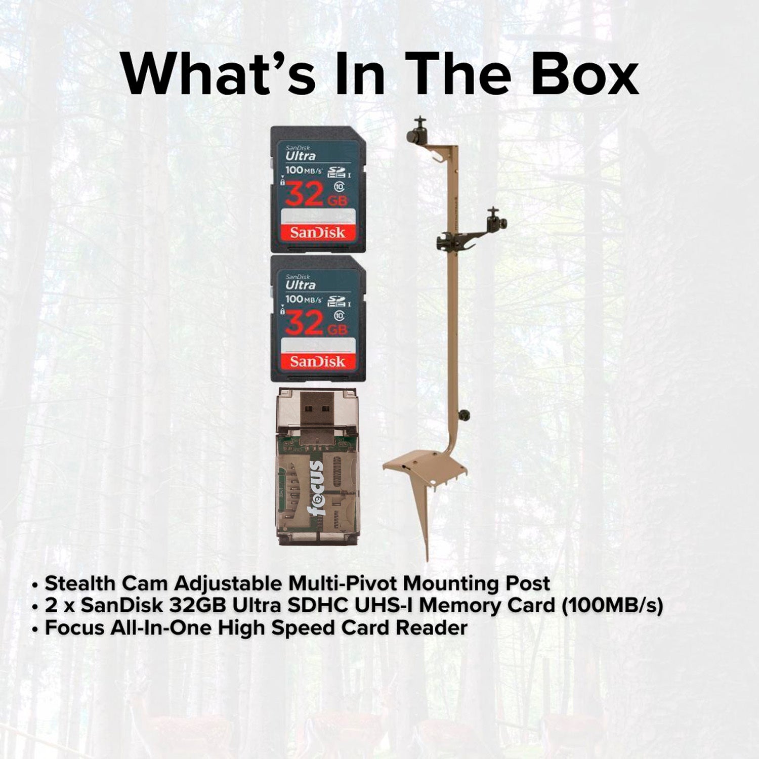 Stealth Cam Adjustable Multi-Pivot Mounting Post with 32GB Memory Card (2-Pack) Bundle