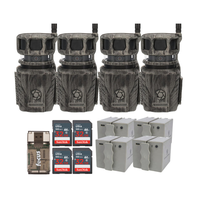 Stealth Cam Revolver 36MP 360-Degree Cellular Trail Camera (4-Pack) and Battery (4-Pack) Bundle
