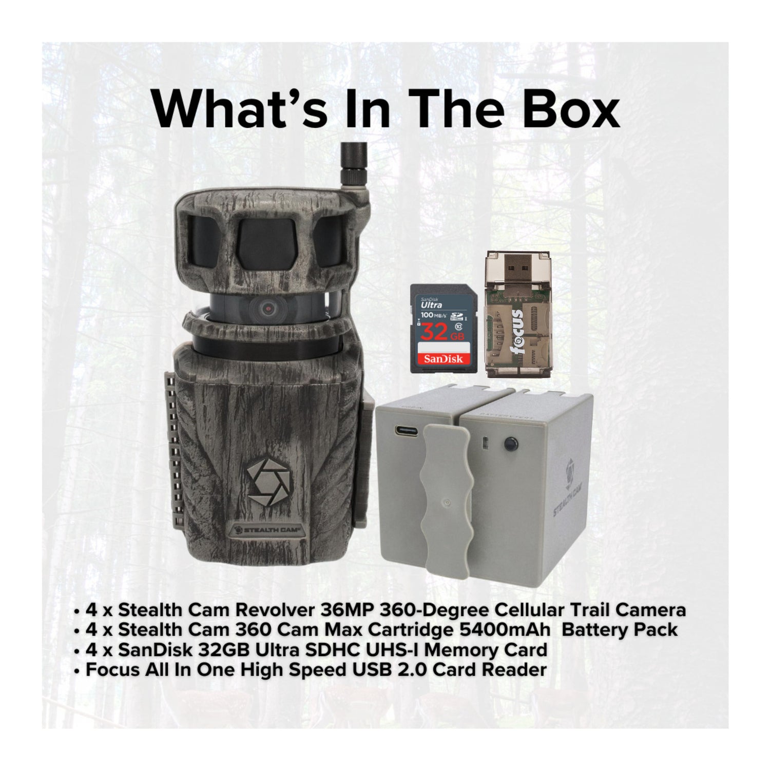 • 4 x Stealth Cam Revolver 36MP 360-Degree Cellular Trail Camera with 1/4-Inch Threaded Mount