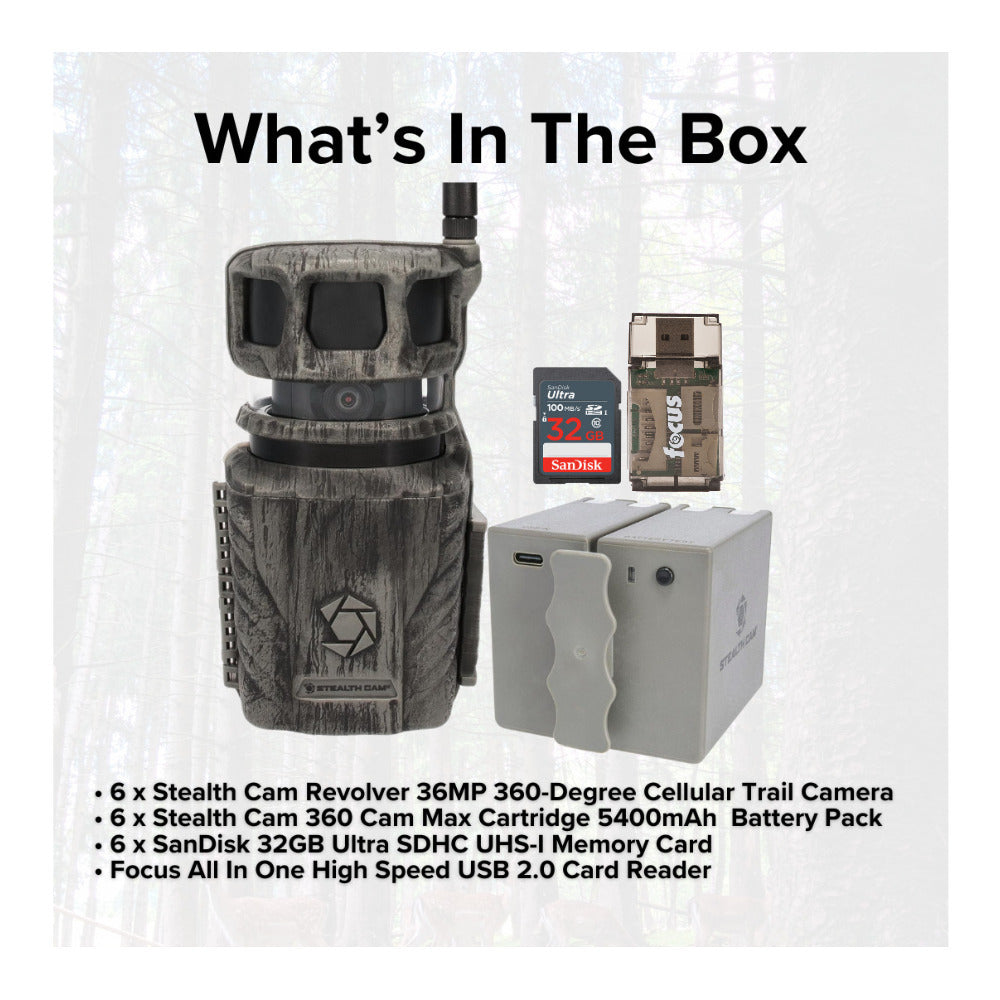 Stealth Cam Revolver 36MP 360-Degree Cellular Trail Camera (6-Pack) and Battery (6-Pack) Bundle