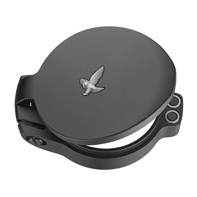 Protect the ocular lens of your optic from impacts, dust, dirt, rain, and snow using this 46mm SLP Riflescope Eyepiece Lens Protector from Swarovski. It allows for easy installation without any tools or modifications. It is constructed from lightweight and durable aluminum and has an anodized finish. This lens protector also features a magnetic catch which ensures it will stay closed until you flip it out of the way.