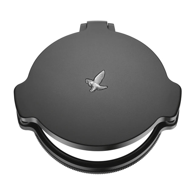 Protect the front lens of your optics from impacts, dust, dirt, rain, and snow using this 56mm SLP Objective Lens Protector from Swarovski. It allows for easy installation without any tools or modifications. It is constructed from lightweight and durable aluminum and has an anodized finish. This lens protector also features a magnetic catch which ensures it will stay closed until you flip it out of the way.