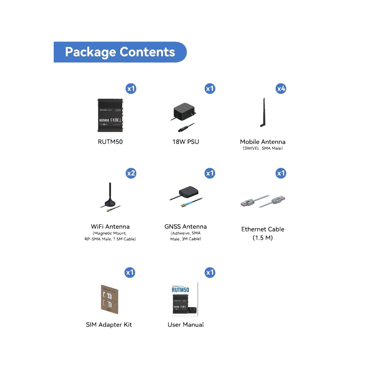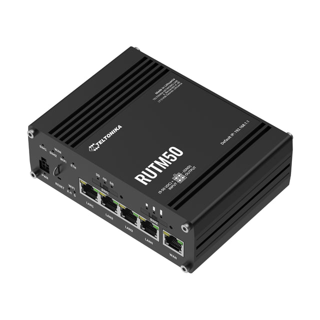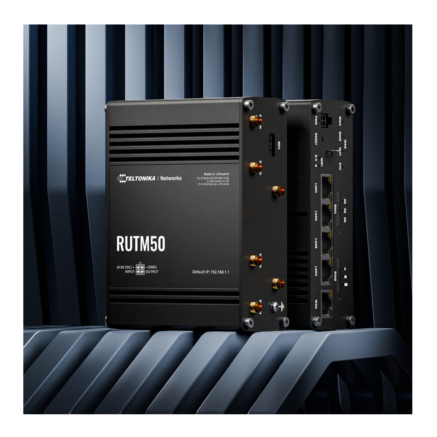 Teltonika brings you a powerful new cellular router with the RUTM50 5G Cellular Router. Specially made for North America, the RUTM50 is an FCC-certified Teltonika Networks router, that features ultra-high cellular speed of up to 3.4 Gbps. This dual SIM router has a variety of features built-in such as auto-failover and backup WAN and supports SA and NSA 5G architecture. It's also backward compatible with 4G (LTE Cat 19/18), making sure your industrial networking solutions are future-proofed.