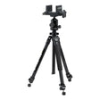extends up to 40 inches tall. The tripod’s clamp-on design allows for use with