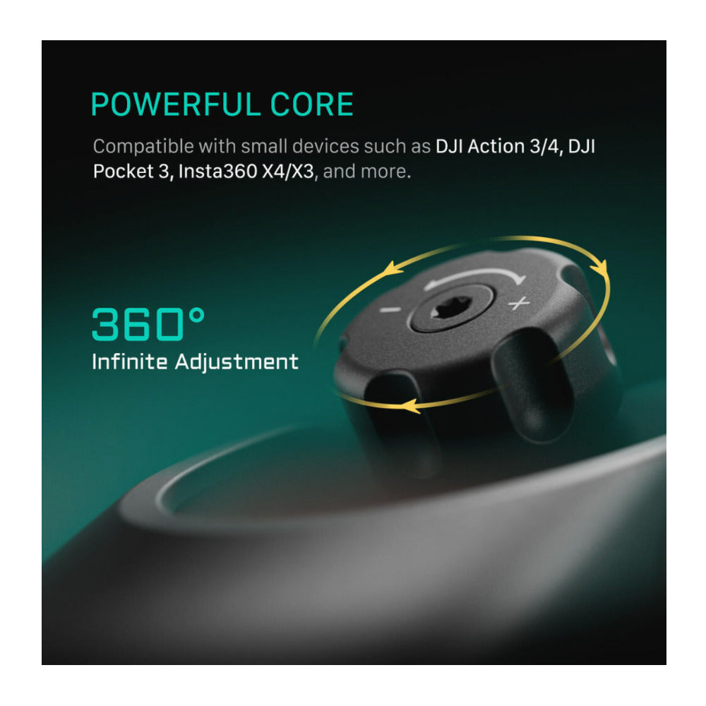 Compatible with small devices such as DJI Action 3/4, DJI Pocket 3, Insta360 X4, X3, and more. It is compatible with the Khronos System. An iPhone with the Khronos Kit can also be easily mounted.