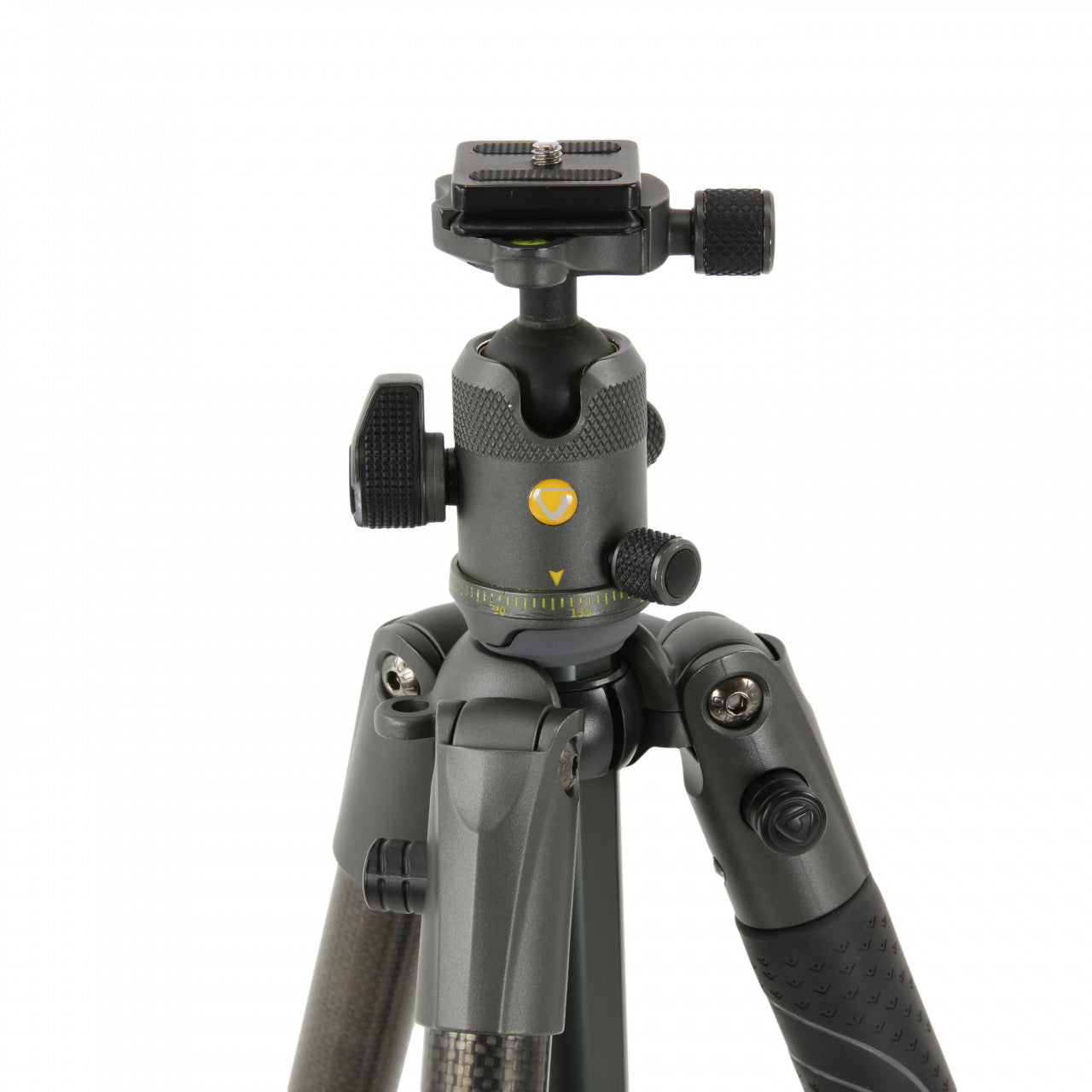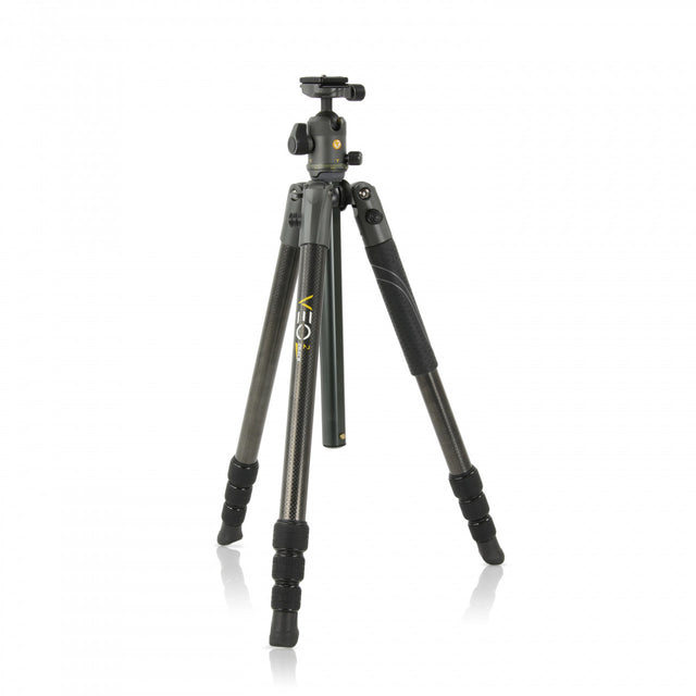 VEO 2 264CB is a super lightweight 4 section carbon fiber travel tripod kit that includes a multi action ball head. It extends up to 61-inches and has a maximum work load of up to 17.6 pounds. Its exclusive and unique central column rotation system allows you to set up the tripod in a snap of your fingers. It also includes an advanced twist 1/4 turn lock unlock system for fast deployment and solid setting.