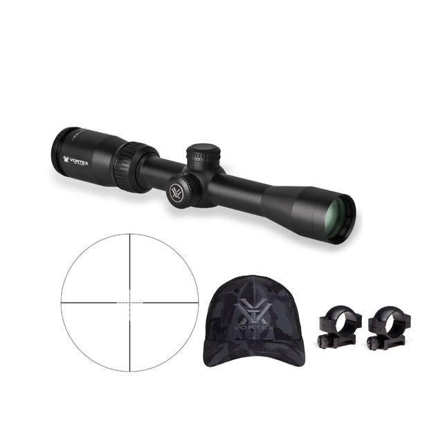 Vortex Crossfire II 2-7x32 Riflescope (Dead-Hold BDC MOA Reticle) W/1-inch Riflescope Rings and Hat