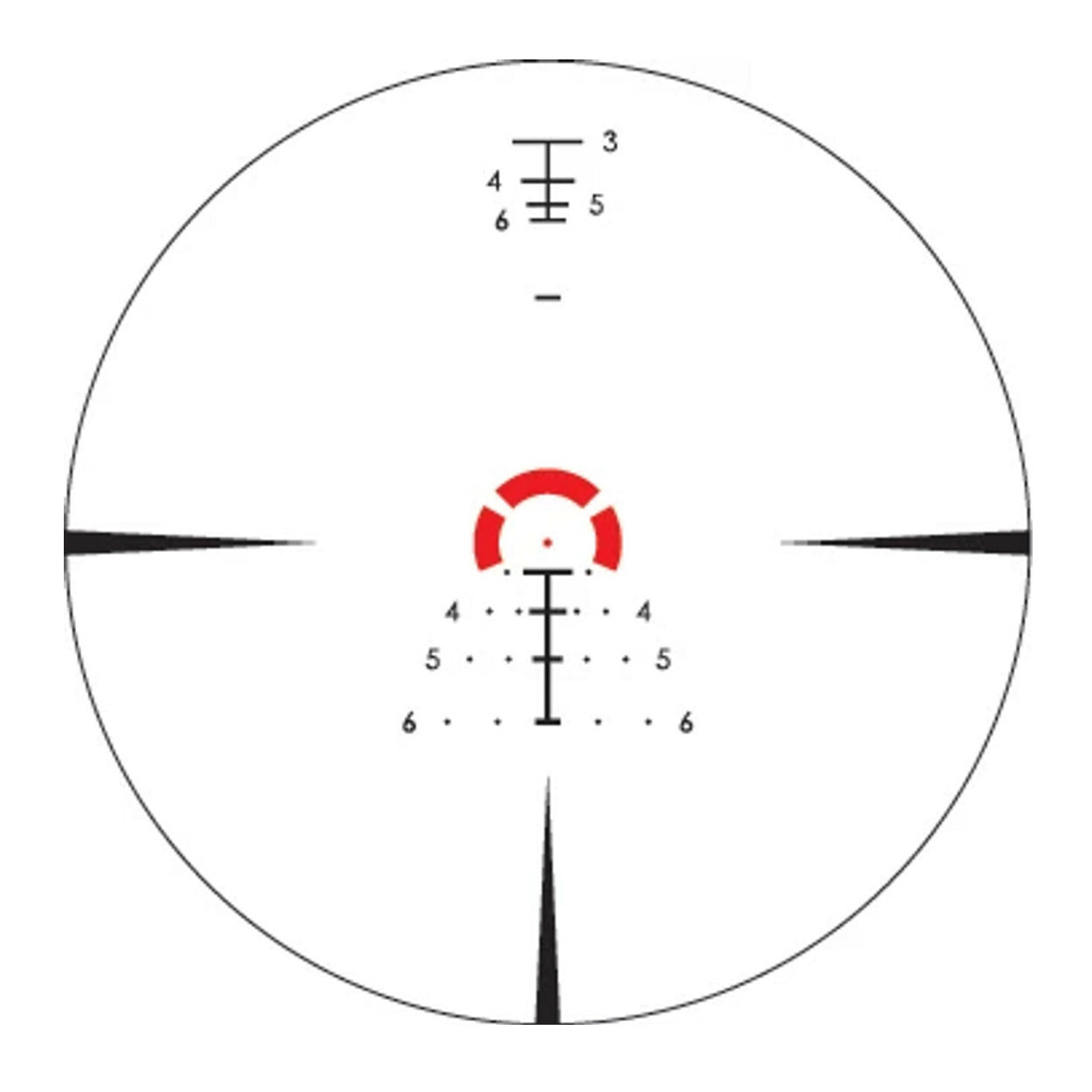 Our exclusive EBR-8 MOA First Focal Plane, glass-etched, illuminated reticle facilitates rapid shooting from point-blank out to 600 yards with popular .223/5.56mm and .308/7.62mm loads. This reticle also can be used with a wide variety of other calibers and loads using the BDC hashmarks.