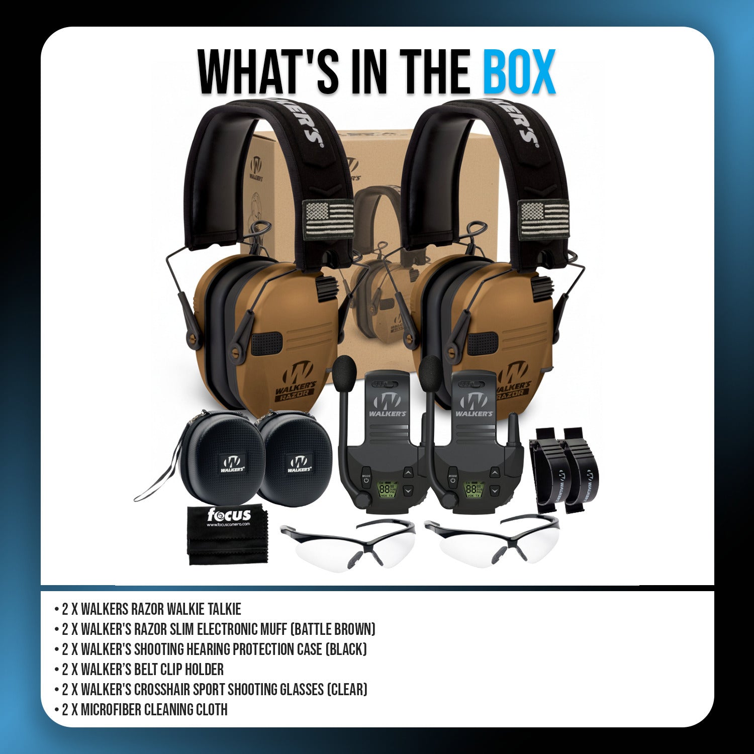 Walkers Razor Walkie Talkie Bundle with Ear Muff (Battle Brown) and Accessories