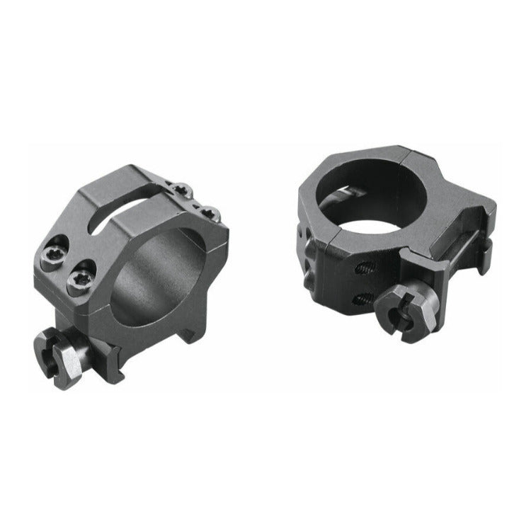 These rings feature four Torx screws for maximum holding power and clamping pressure for reliable optic mounting. The lightweight aircraft-grade aluminum is hard anodized coated for a lifetime of service. These rings have improved crossbolts from Weaver to Picatinny spec. The type-III hard coat anodized finishing, no-strip Torx screws and skeletonized design adds to its durability