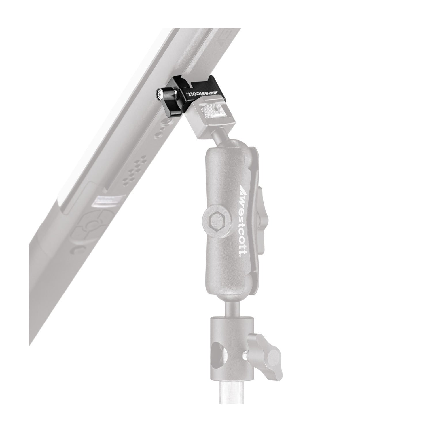 The NATO Adapter Clamp mounts directly to the Westcott Ice Light 3 and any NATO rail gear, including cages and handles, for pairing with lights, arms, monitors, microphones, and more. It also works with 1/4 inch-20 and 3/8 inch-16 threaded brackets and accessories such as Westcott Dual-Joint Brackets and the Adjustable Shoe Mount Speedlight Bracket, giving you flexibility across multiple setups.