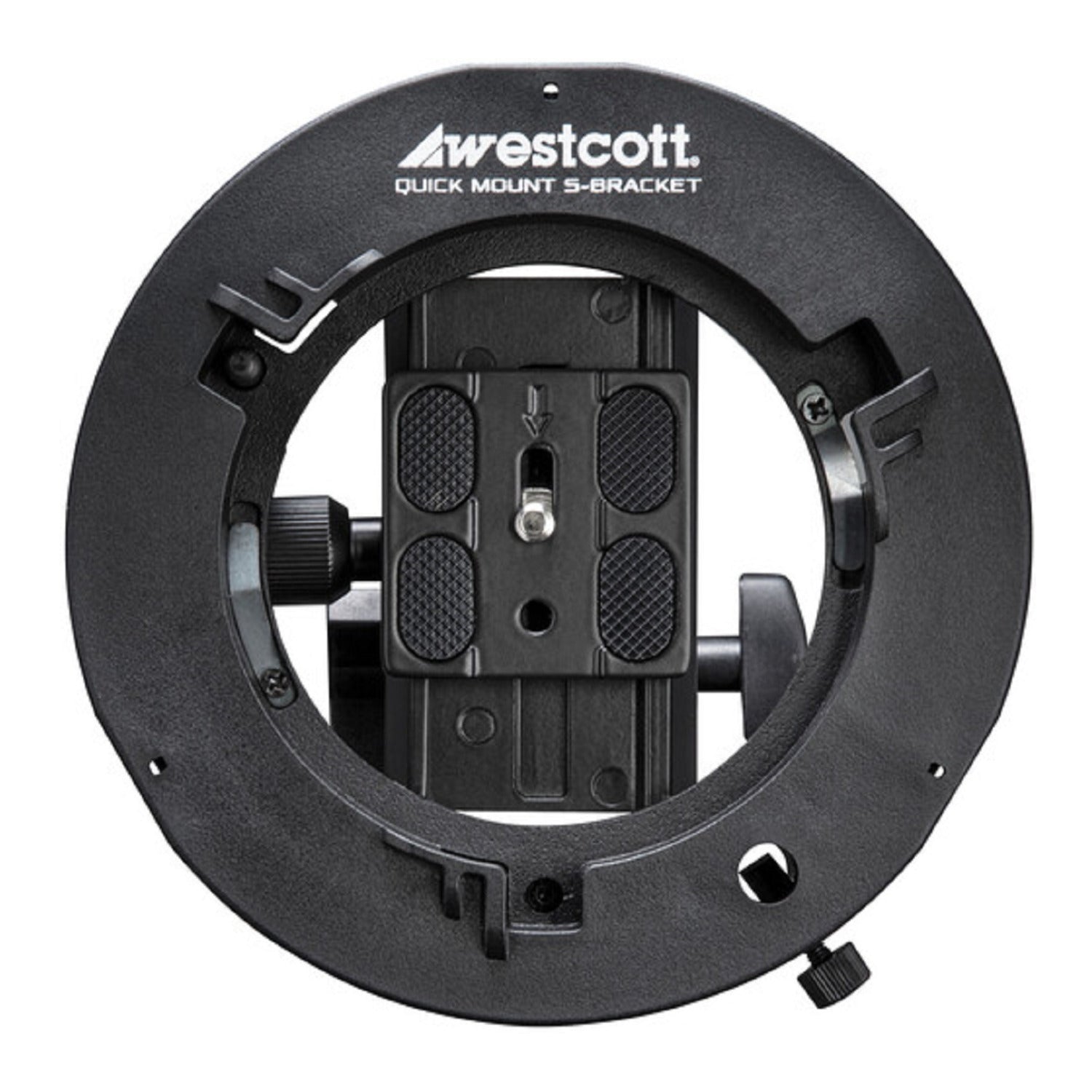 The quick-mount bracket includes a Bowens S-Type accessory mount for light modifiers including Rapid Box Switch, studio softboxes, reflectors, snoots, grids, barndoors, and more. For added convenience, the quick-mount plate can remain attached to your light for future mounting.