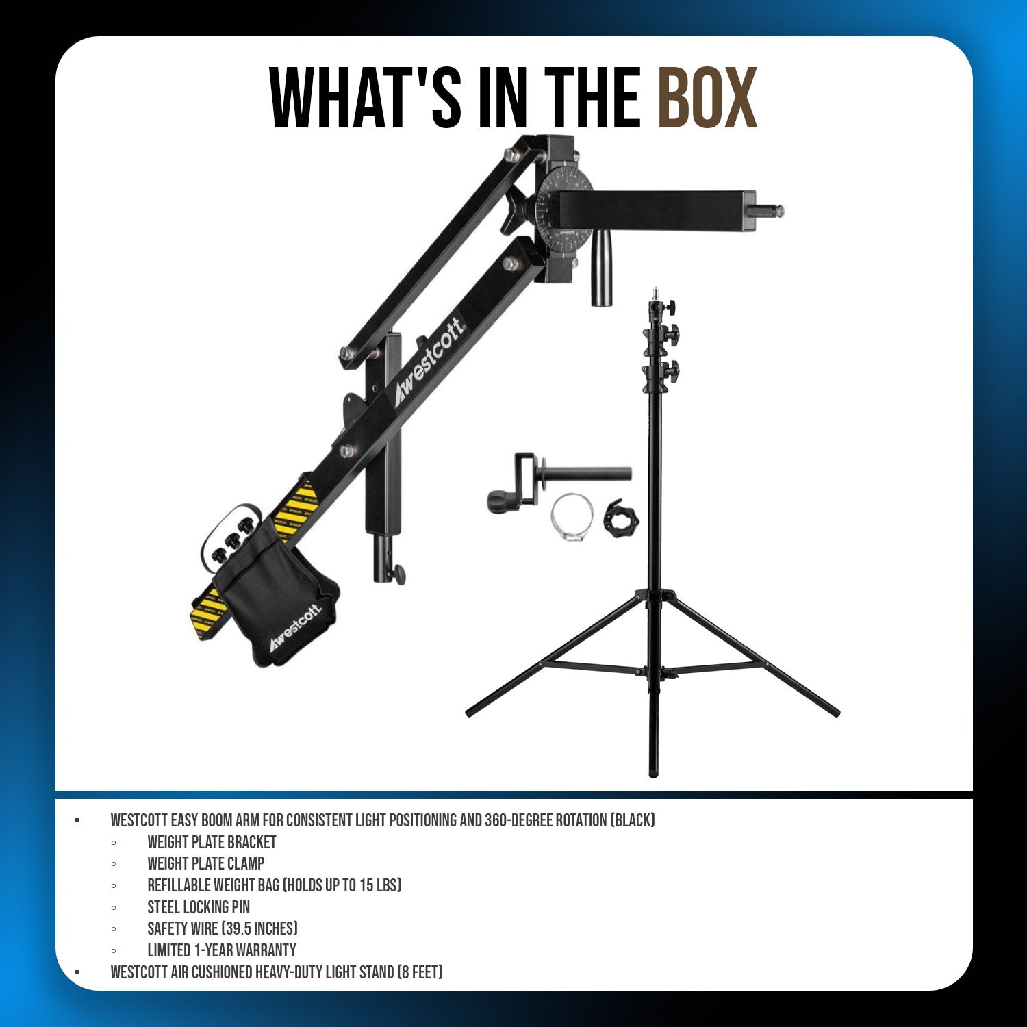 Westcott Easy Boom Arm for Consistent Light Positioning and 360-Degree Rotation (Black) Bundle