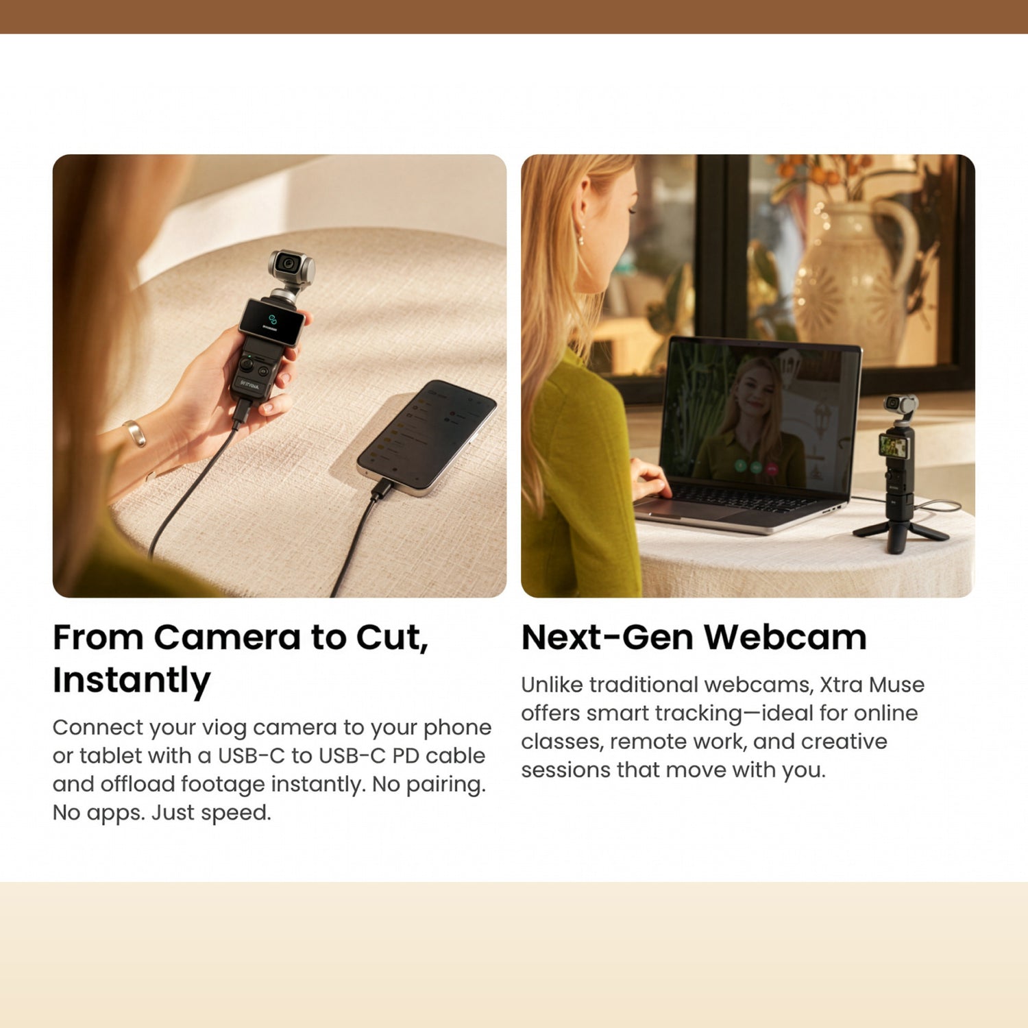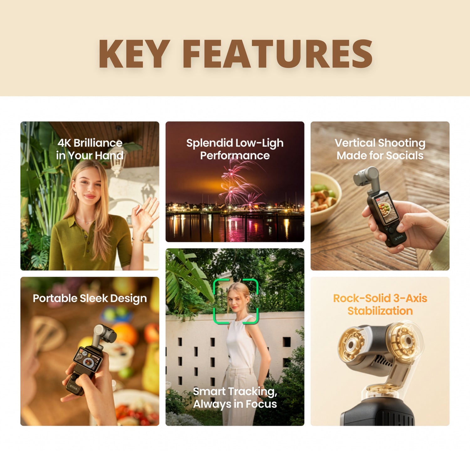 The Xtra Muse is a Gimbal Action Camera with 4K/30fps Video Recording, Smart Tracking, Rock-solid 3-axis Stabilization, and Portable Design for Content Creators and Photography enthusiasts alike.