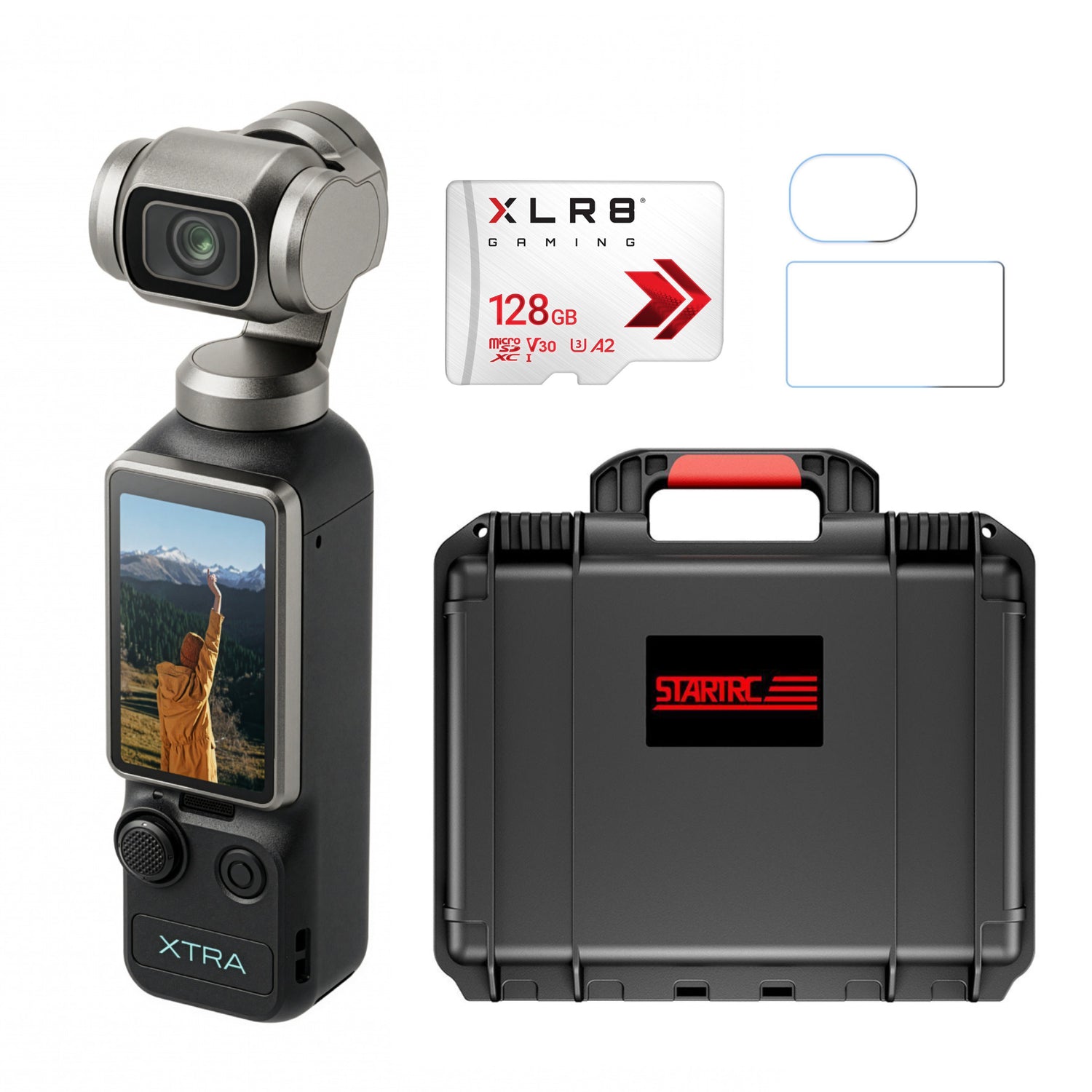 Xtra Edge Muse Gimbal Action Camera with 128GB MicroSD and Accessories Bundle