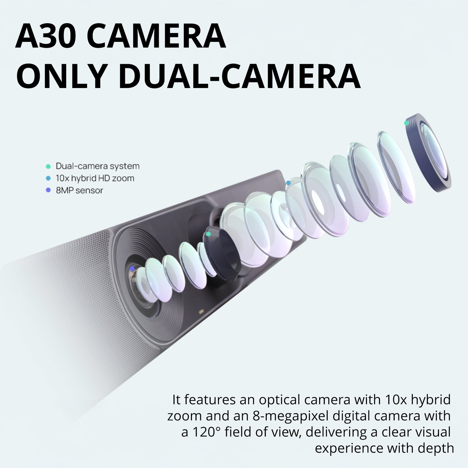 • 8MP camera with 10x hybrid zoom