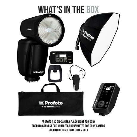 Profoto A10 On-Camera Flash Light for Sony with Wireless Transmitter and Softbox Octa 2 Feet Bundle