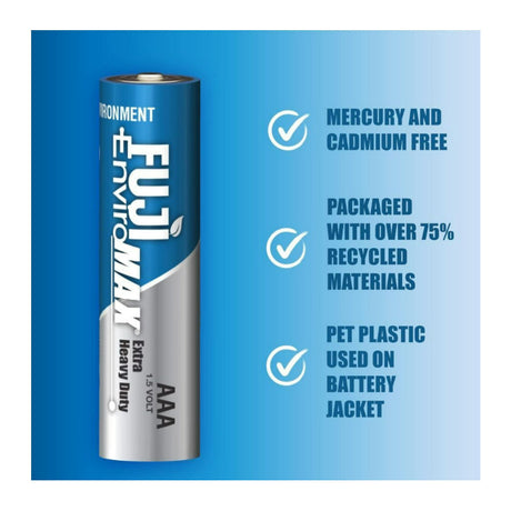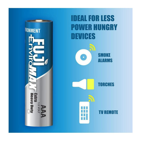 In stock$10.99Unit price /UnavailableFuji EnviroMAX Extra Heavy-Duty Single Use 1.5V Zinc AAA Battery for Clocks and Remotes (20-Pack)