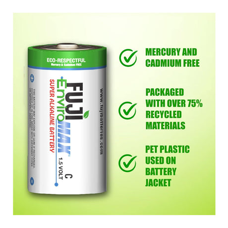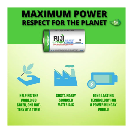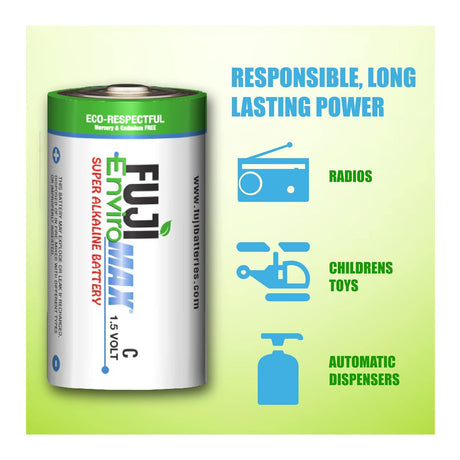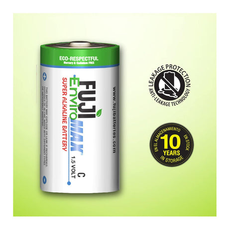 Fuji EnviroMAX C Super 1.5V 4200mAh Alkaline Battery for Clocks, Radios, and Smoke Detector (2-Pack)