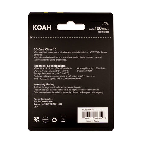 Koah Ultimate 64GB SDHC Memory Card Class10 U3 V30 UHS-I High-Speed Storage