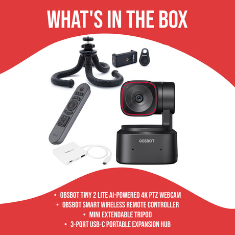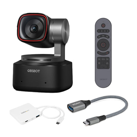 OBSBOT Tiny 2 AI-Powered PTZ 4K Webcam with Smart Remote Controller and USB-C Expansion Hub Bundle