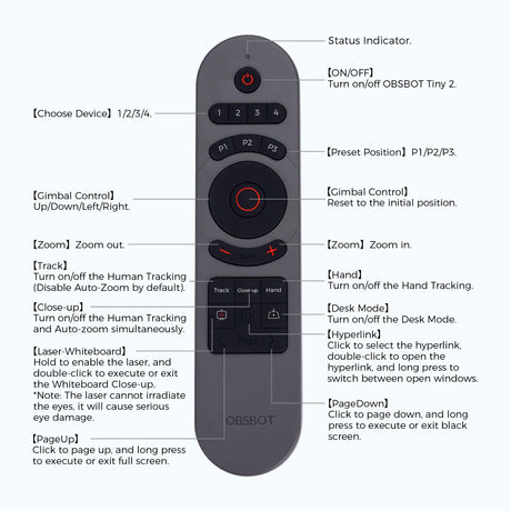 OBSBOT Smart Wireless Remote Controller with USB-A Dongle and Intuitive Buttons for Tiny 2 (Gray)