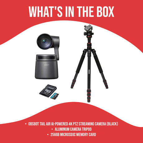 OBSBOT Tail Air AI-Powered 4K PTZ Streaming Camera with UHD Resolutions (Black) Bundle