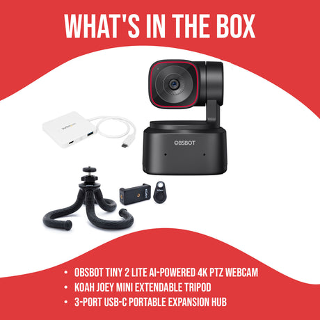 OBSBOT Tiny 2 Lite AI-Powered 4K PTZ Webcam with 3-Port USB-C Expansion Hub for Laptops Bundle