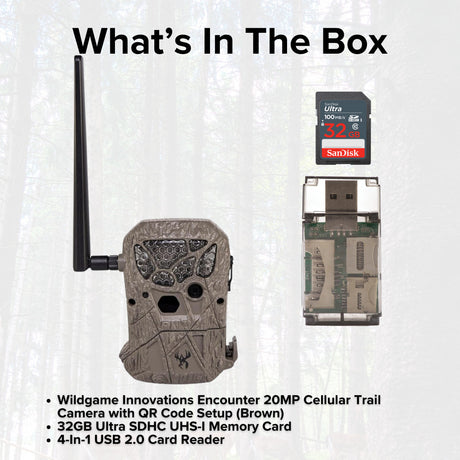 Very low stock$98.00$137.20Unit price /Unavailable Wildgame Innovations Encounter 20MP Cellular Trail Camera with QR Code Setup (Brown) Bundle