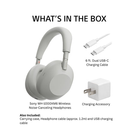 Sony WH-1000XM6 Wireless Noise-Canceling Headphone and Accessory Bundle (Silver)